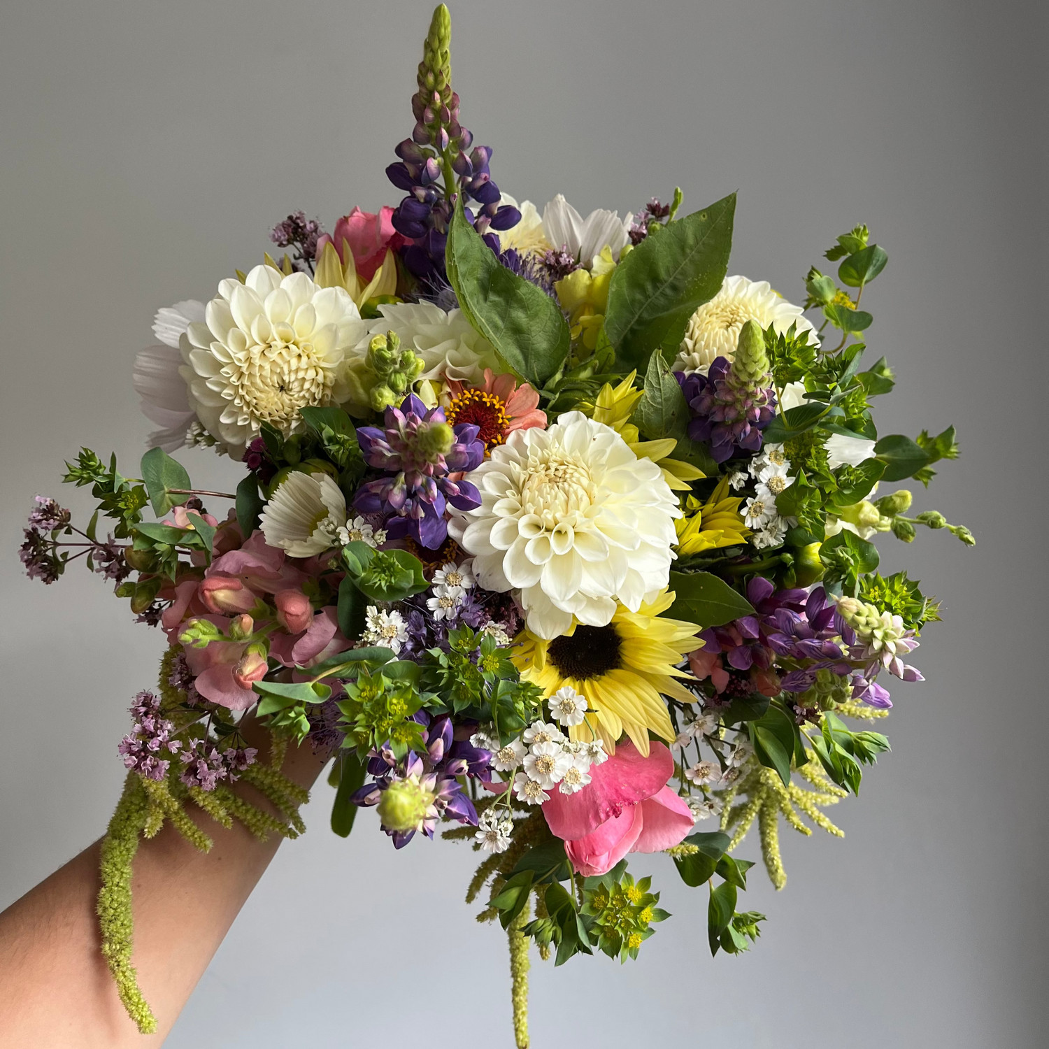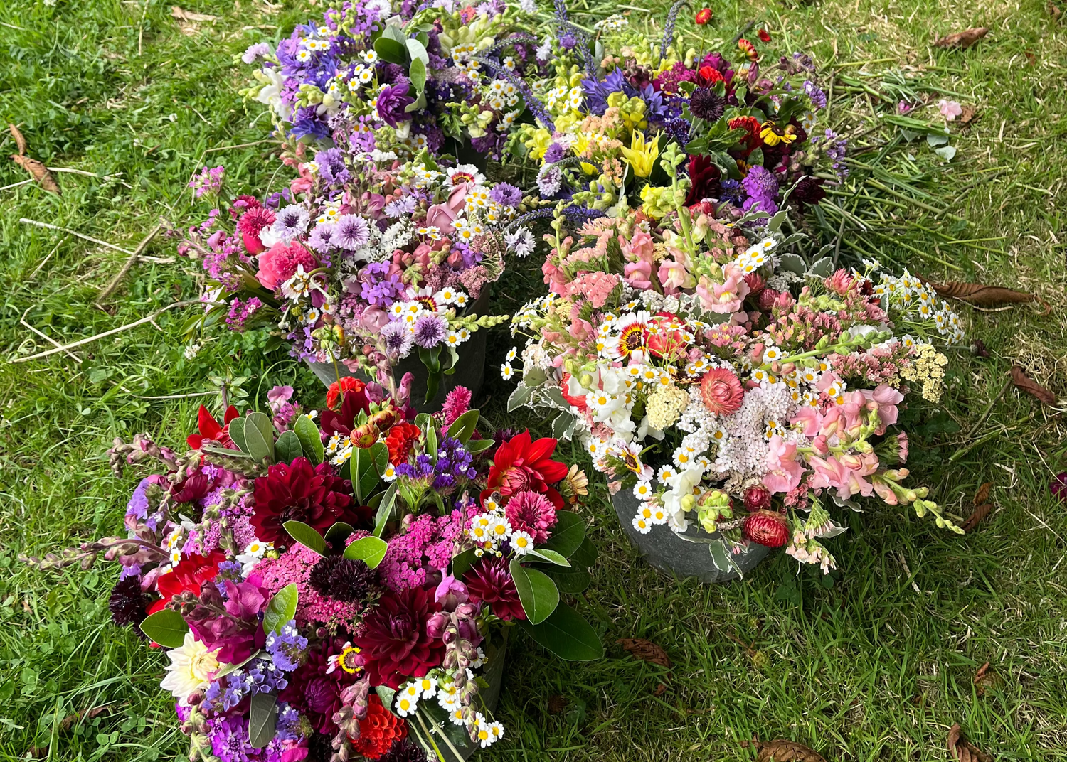 We create bouquets, buttonholes, corsages, table centres, venue/church arrangements and more. We only use flowers that are in season and grown on our farm so although we can cater for your colour palette, we cannot guarantee specific flowers.